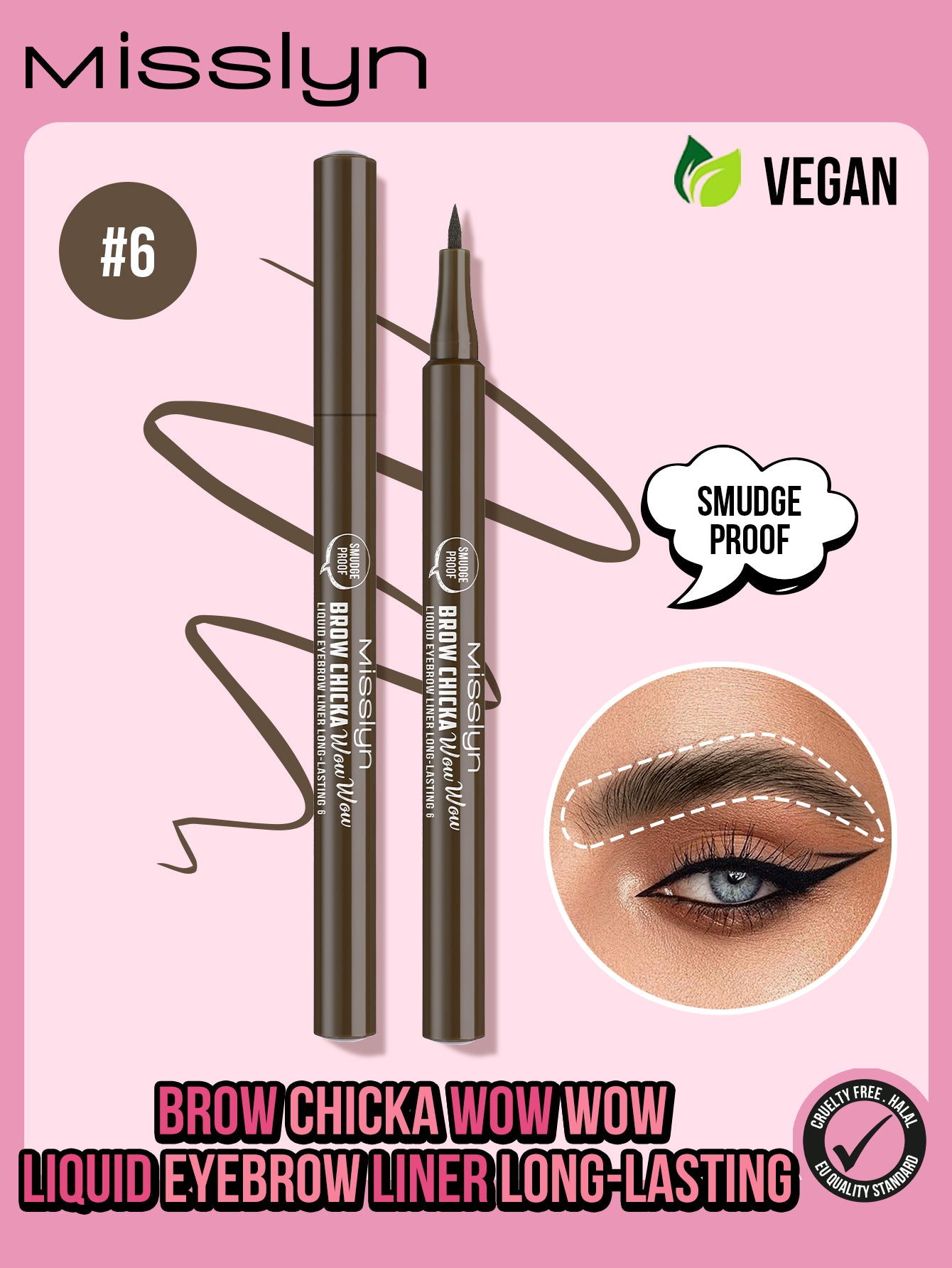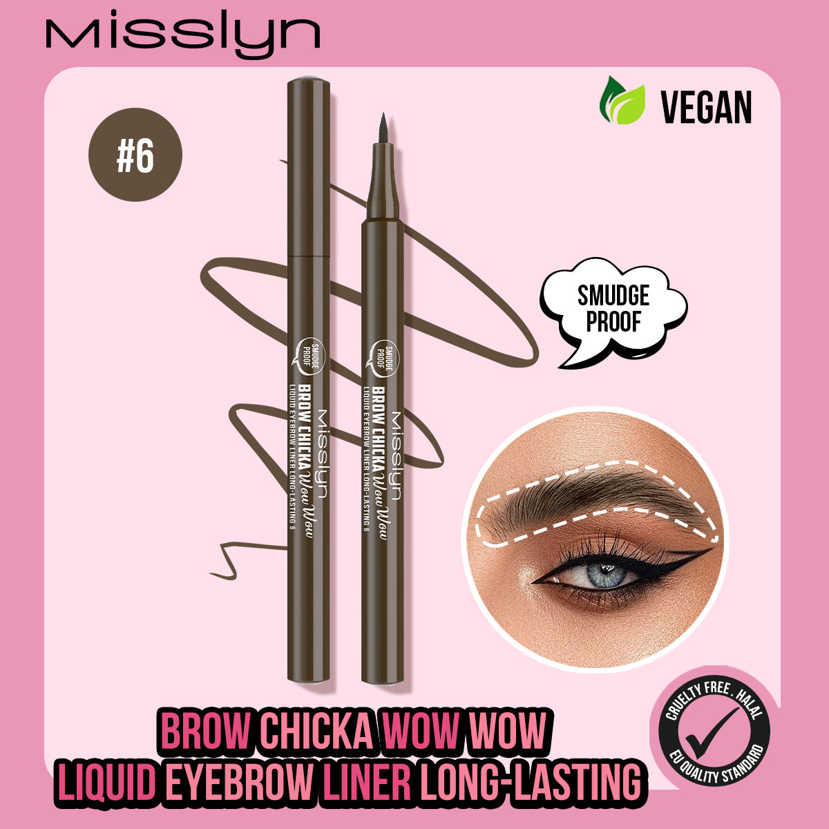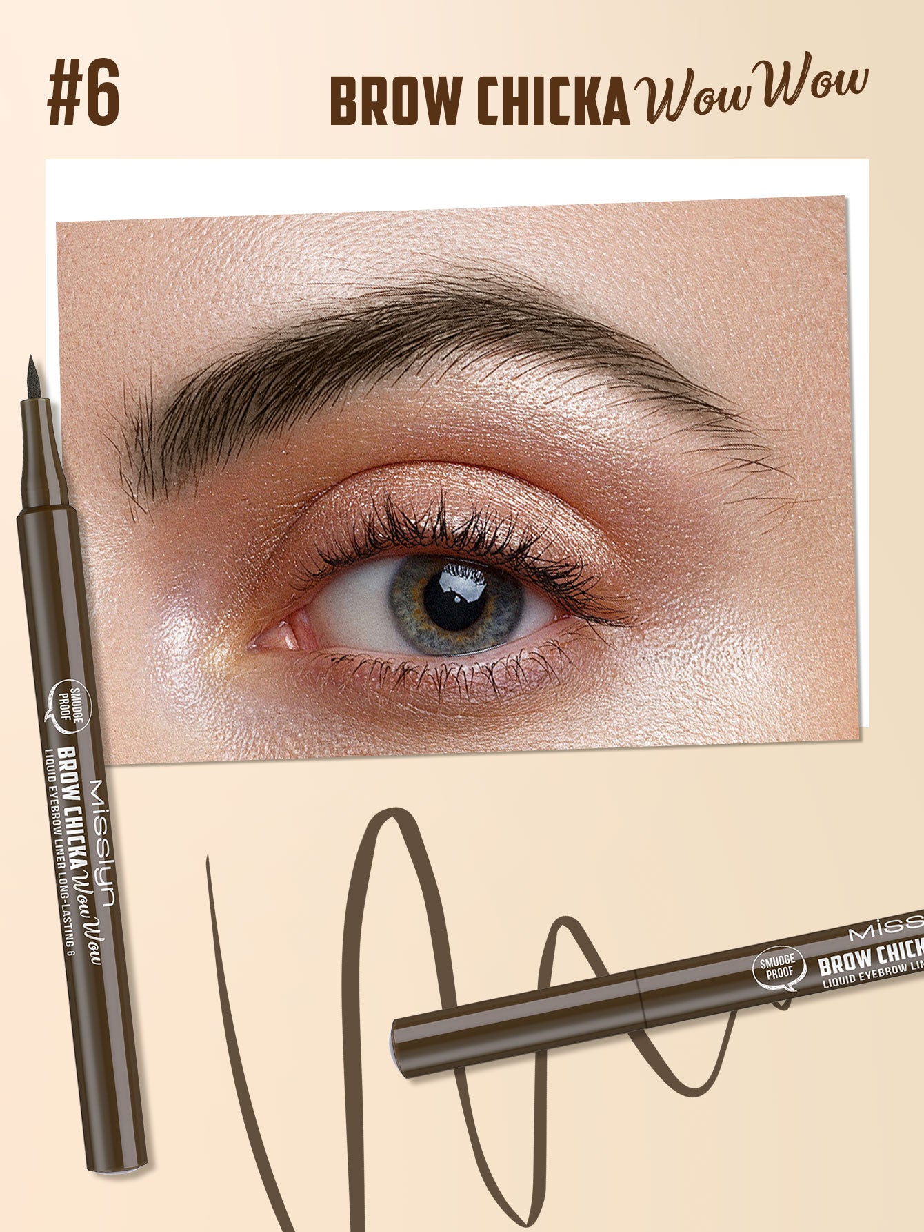 BROW CHICKA WOW WOW liquid eyebrow liner long lasting, 6 ebony
