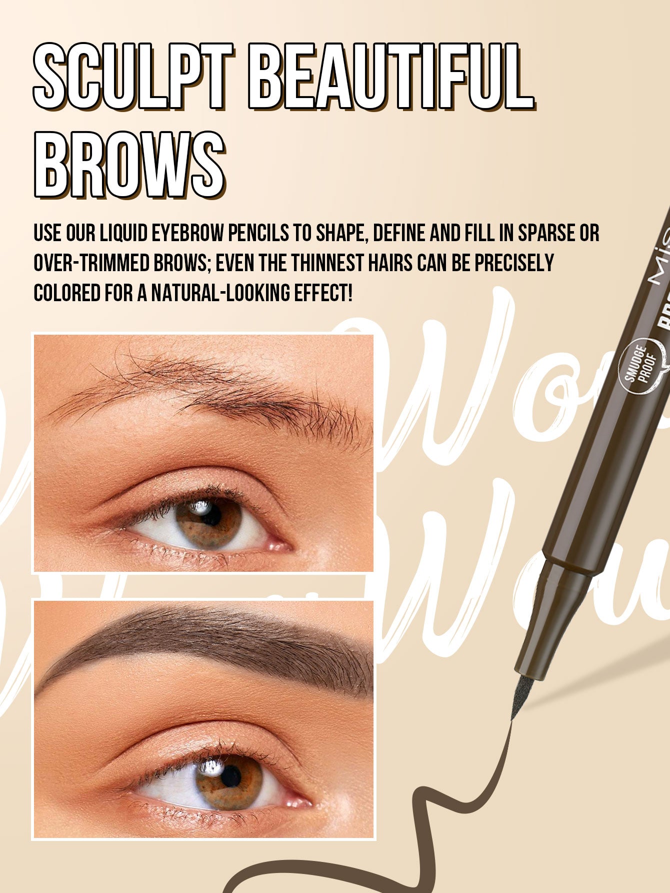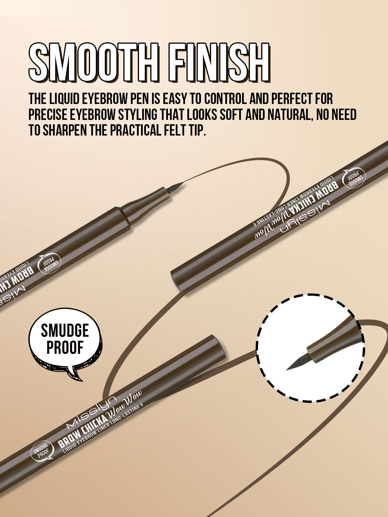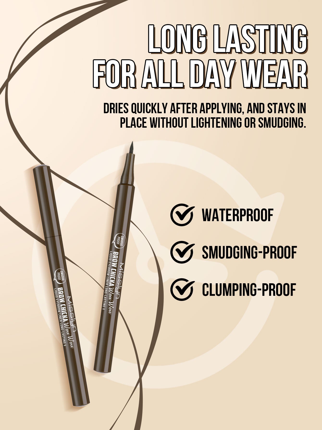 BROW CHICKA WOW WOW liquid eyebrow liner long lasting, 6 ebony