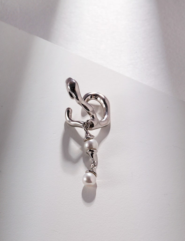 Sterling silver pearl ear clip E0863