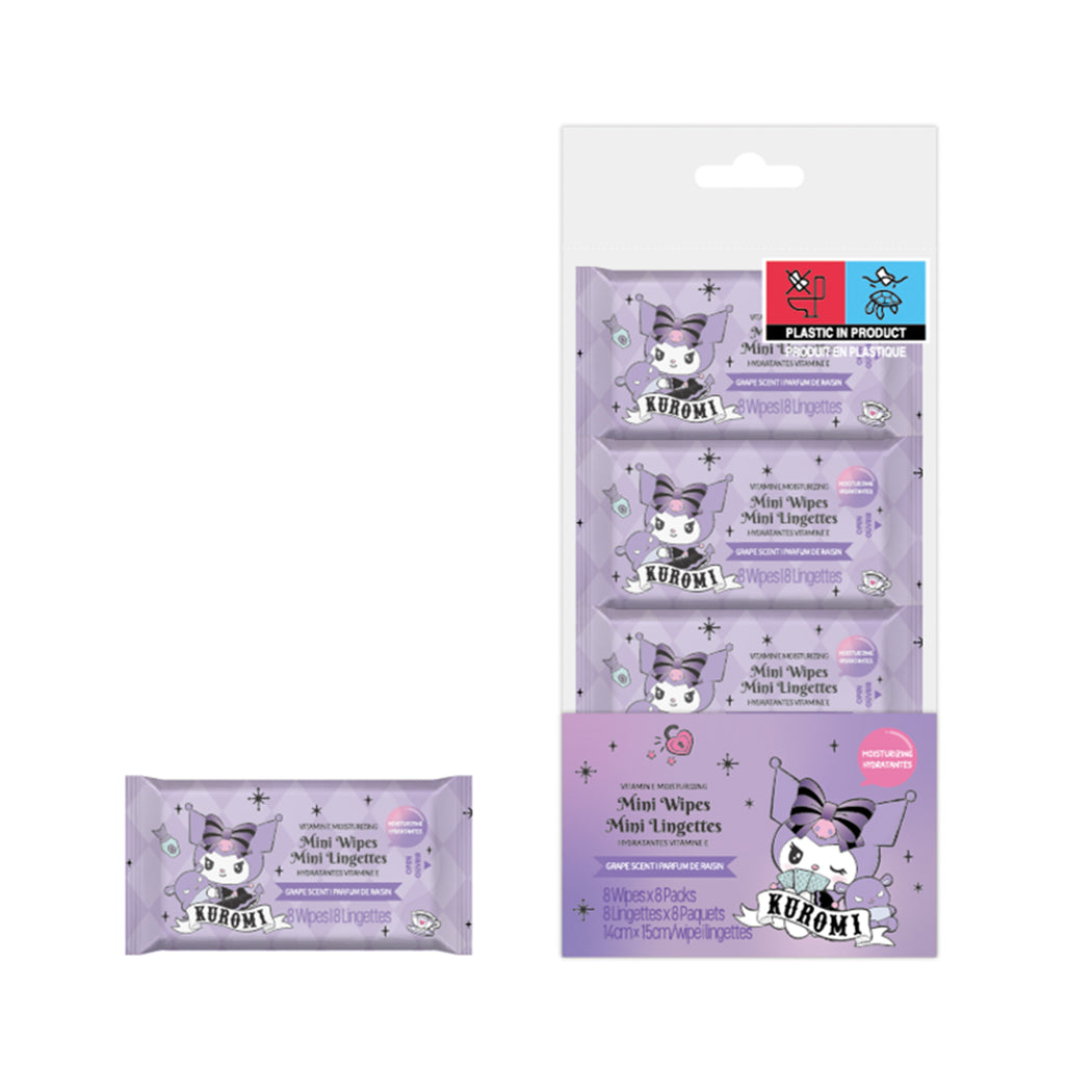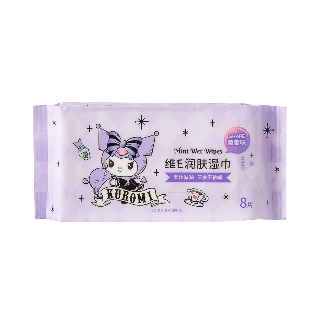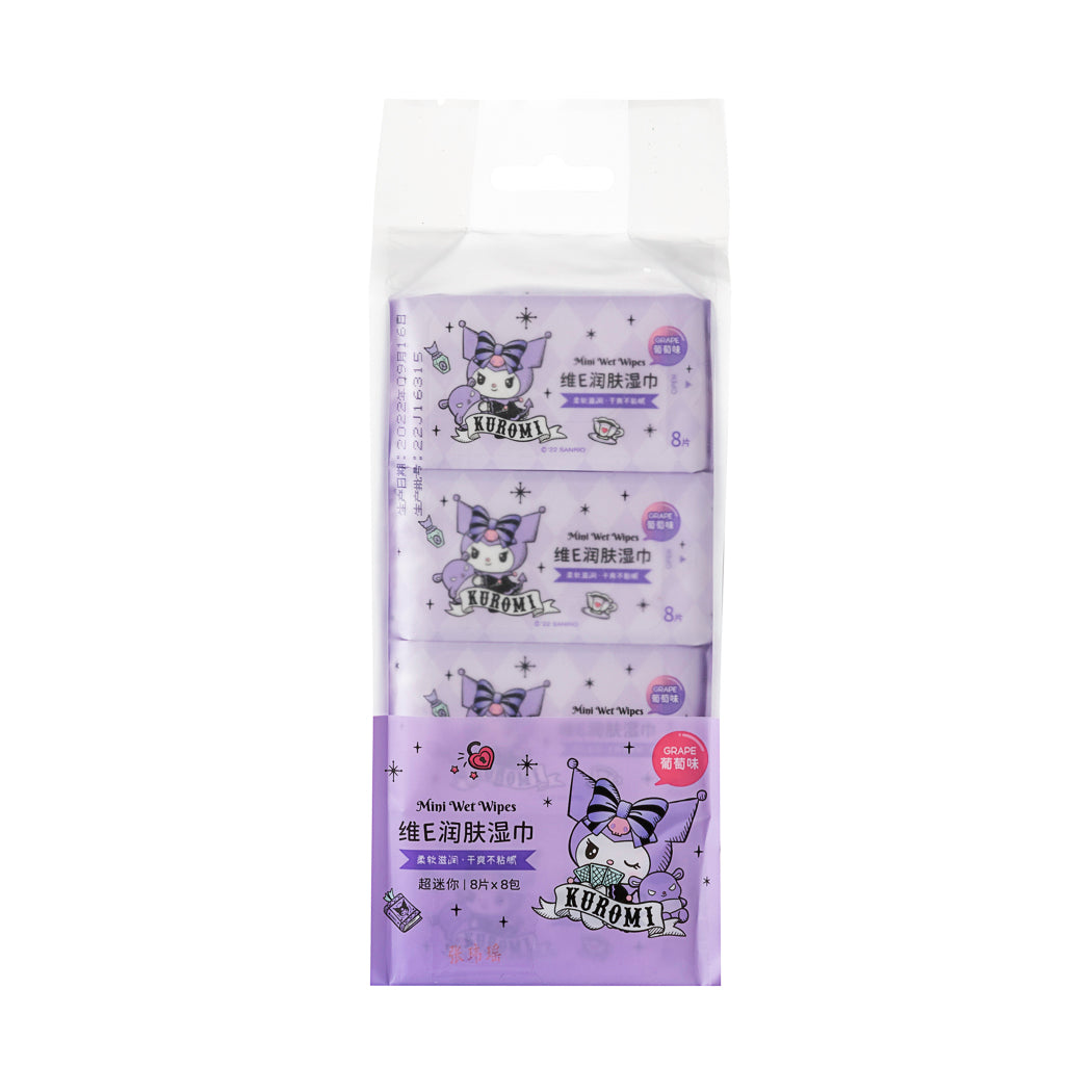 Kuromi Vitamin E Moisturizing Mini Wipes (Grape Scent; 8 Wipes x 8 Packs)